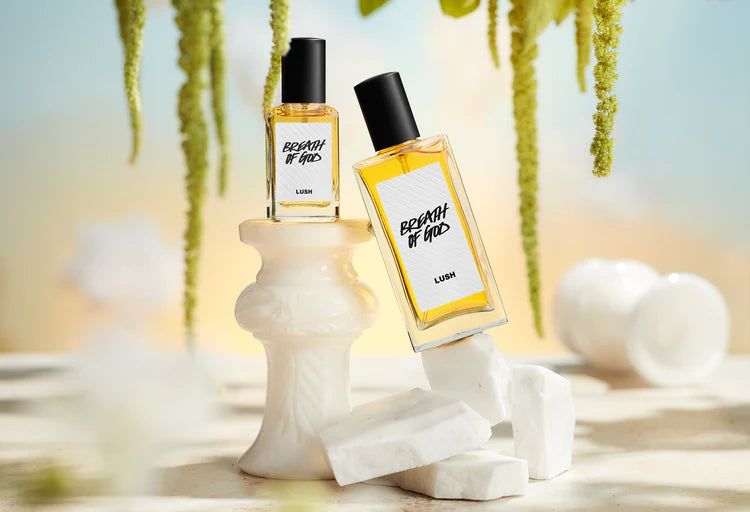 mountains and the smoky scents from the Tibetan temples. He rushed home to create two perfumes: Inhale and Exhale. Inhale is a light, melony scent while Exhale is a deep, smoky incense that he then combined to create Breath Of God. The melony citrus moves deeper into sandalwood and